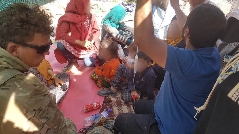Simmie vorig jaar in het Afghaanse Kabul tijdens de evacuatie-opdracht.